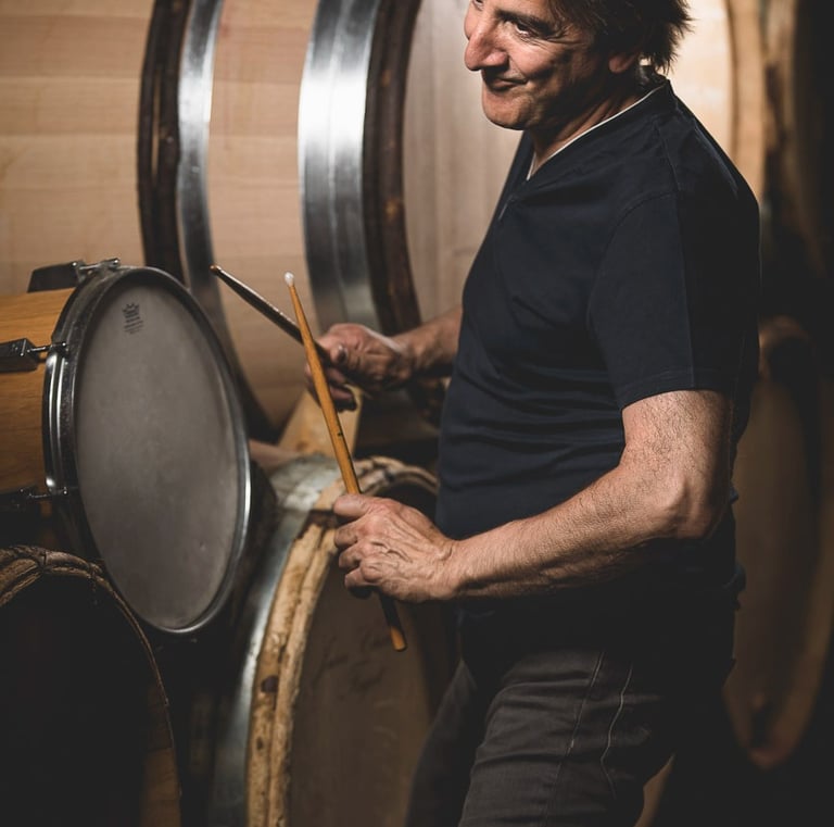 La musique coule dans mes veines depuis que j'ai l'âge de taper sur mon tambour... plus grand j'ai eu droit à mes premières baguettes et mes voisins ont découvert ma passion pour la batterie ! Ma passion m’a mené à rencontrer des grands noms comme Billy Cobham et André Ceccarelli, qui m’ont initié au funk fusion et au jazz. Curieux de scène, j’ai délaissé un temps la batterie pour le chant et le piano, jusqu’à sortir un album en tant qu’auteur-compositeur sous le nom de Charles Corto. Aujourd’hui, entre le domaine, l’auberge et la vie de famille, la musique a trouvé sa place autrement… Aujourd’hui, la musique reste un fil conducteur dans ma vie. Le projet Accord Majeur a ravivé cette flamme, avec la sortie récente de l’album Voyage, qui marque un nouveau chapitre sonore.